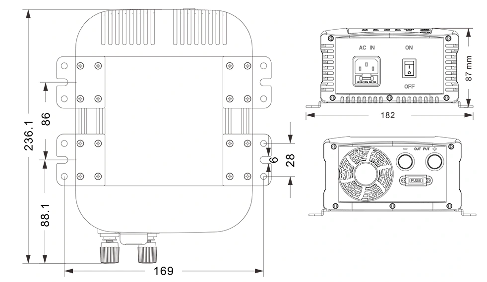 Mechanické výkresy: (236,1 × 182 × 87 mm)
