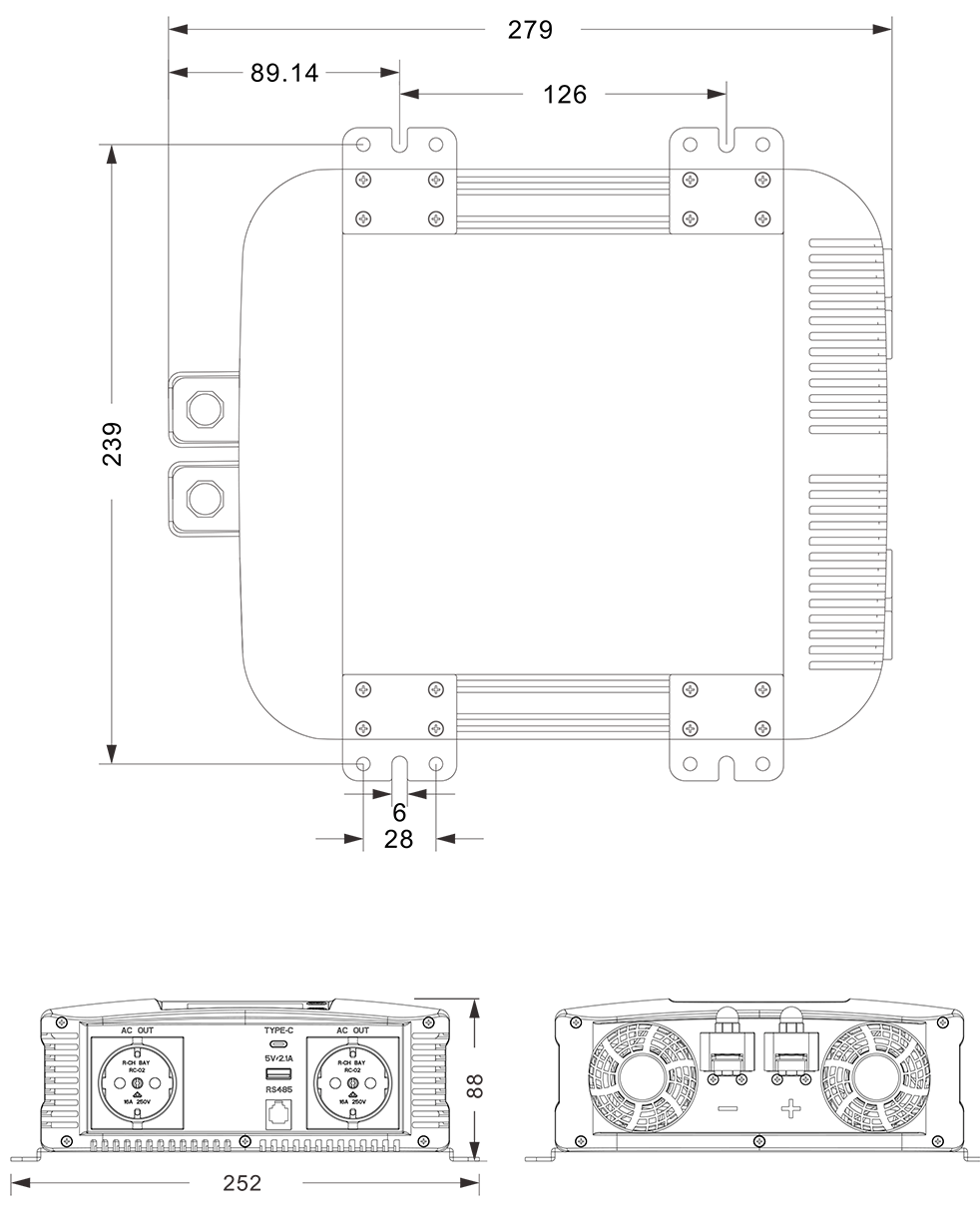 Ostatní Rozměr (Š×V×H) 279×252×88 mm