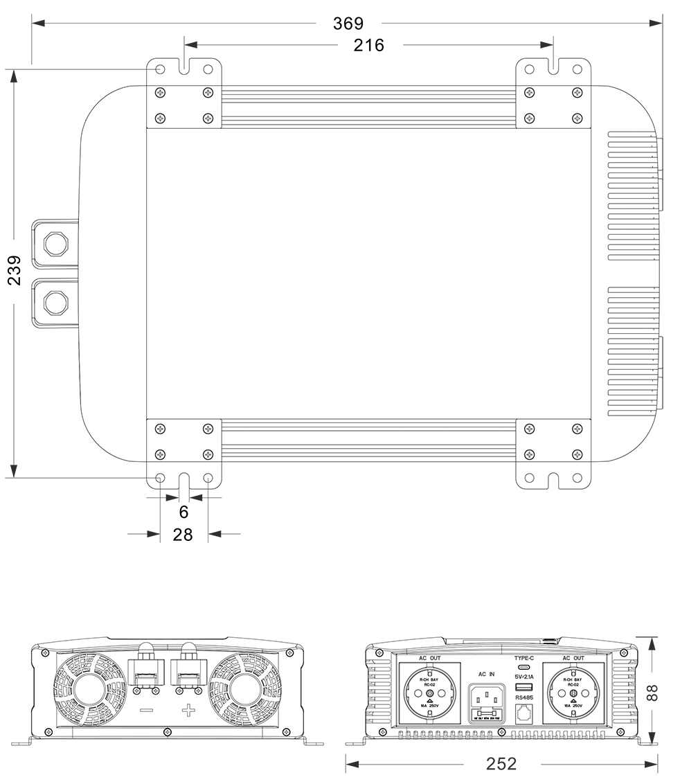 ●USB:5V /2,1A / Typ-C:Max 35W